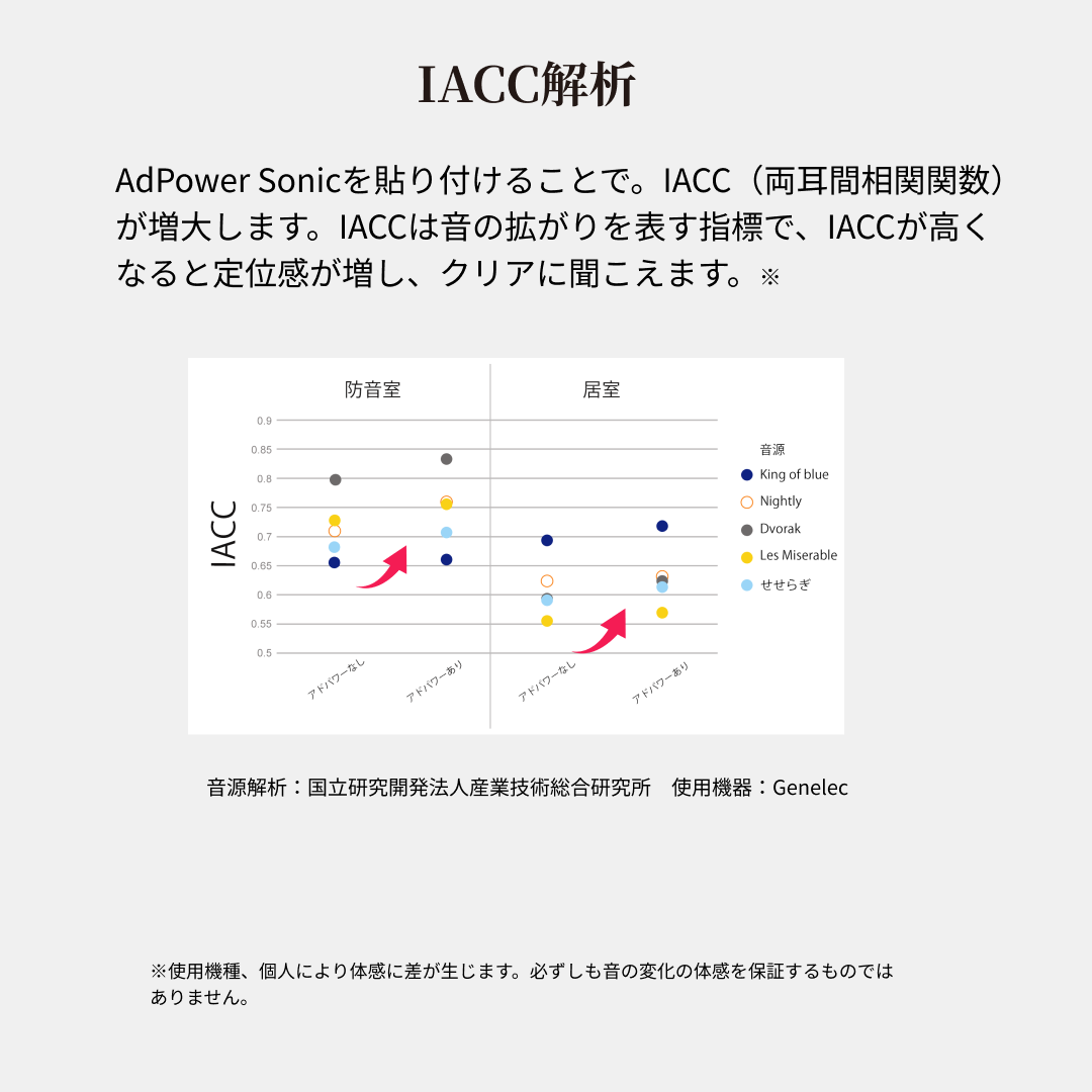 - シール状の製品をオーディオ・楽器に貼り付けることで、定位感が増し音質が変化
